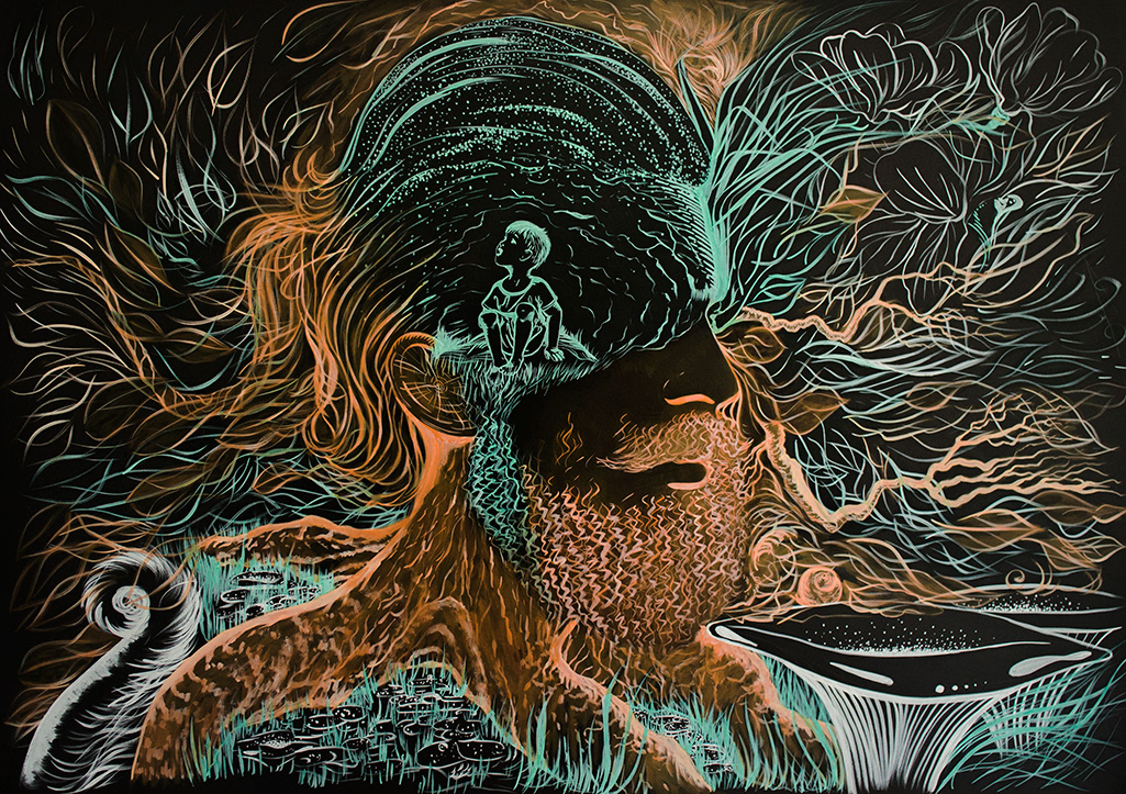 I made these illustrations with ink on colour paper, A2 - A1 size.